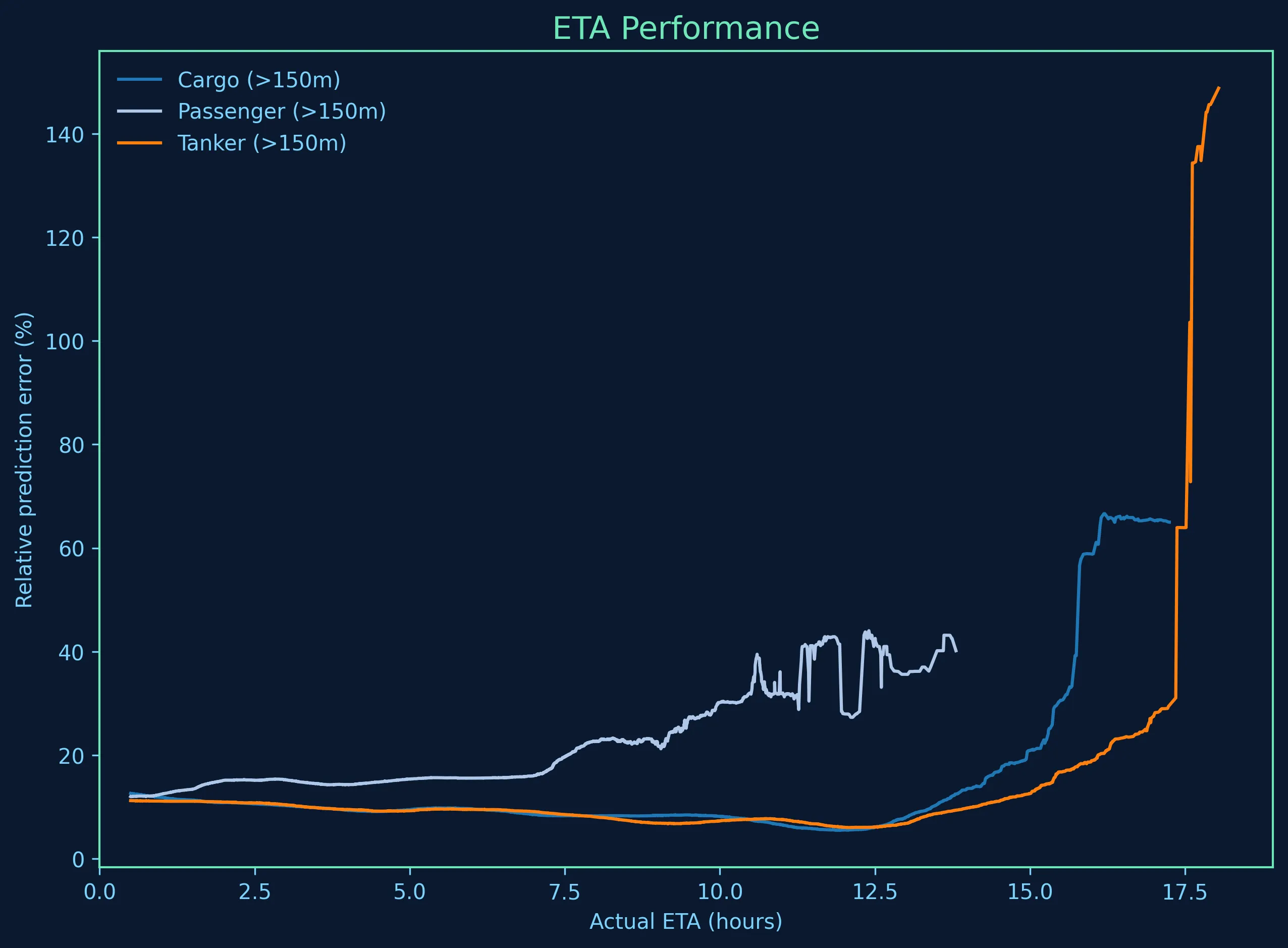 Optimise berth allocation and reduce disruption with continuously updated ETAs during final approach to custom locations, such as pilot boarding stations or specific berths.